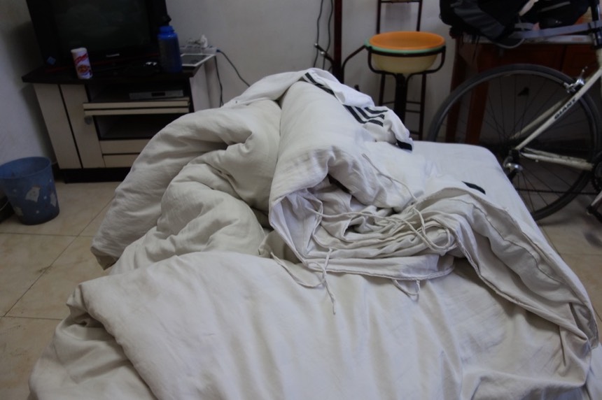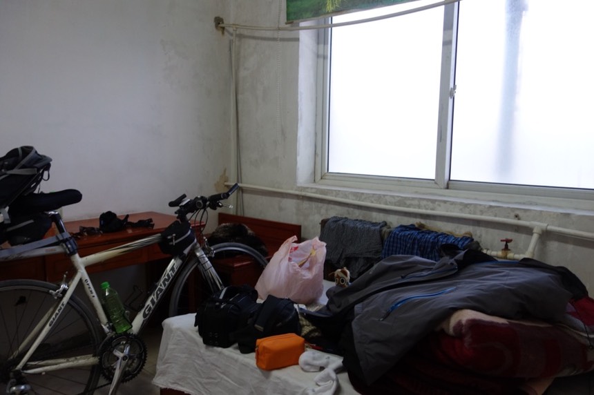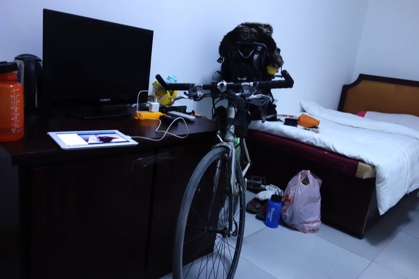 雖然現在只有我一個人,也許晚點會有床伴出現,而當這件事情發生的時候,旅館老闆要求我把單車移到走廊去擺放。