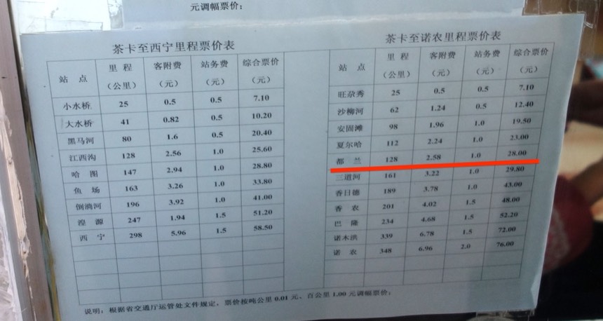 只開到都蘭,開價50(這價錢基本上應該可以到格爾木了吧?依照網路文章的說法)