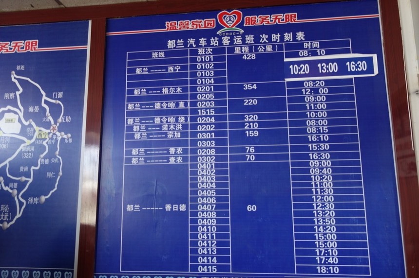 在汽車站內研究還有什麼車可以搭,想要慢慢的往格爾木的方向推進,選擇很少。(往格爾木一天兩班,早午各一班這點還算不錯)
