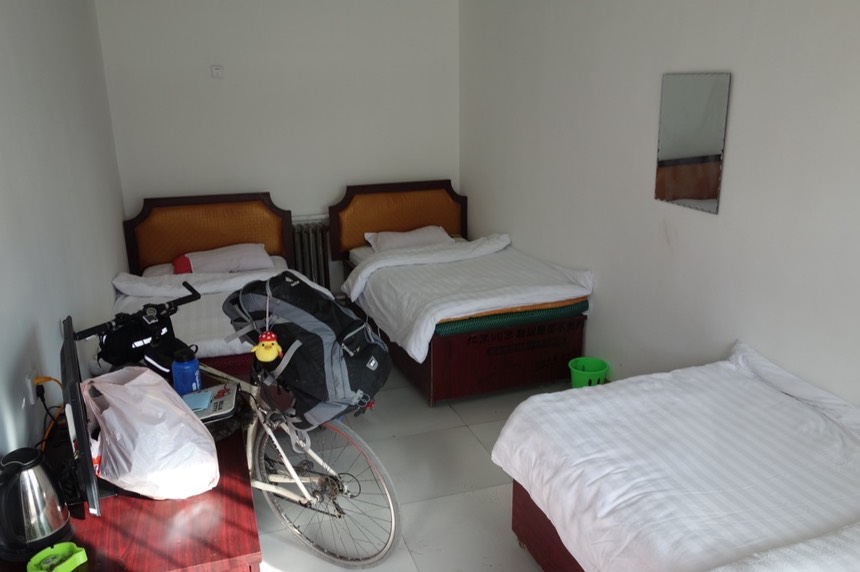 在城市繞了一圈又一圈,在離汽車站不遠處的旅館找到40元一床的三人房。