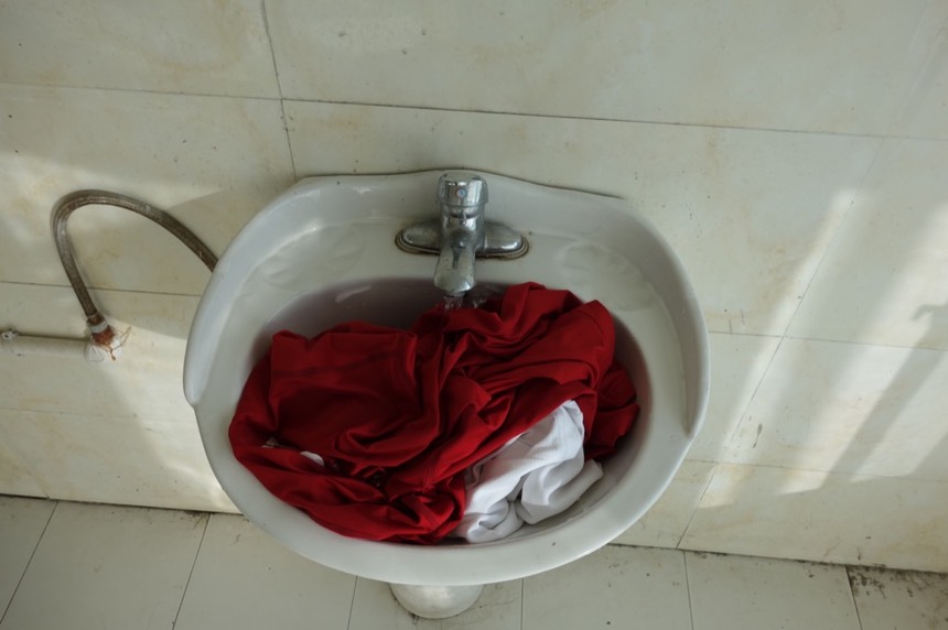 說是”洗衣服",其實只是一點心意而已,因為沒有任何的洗衣粉,只是簡單的用水泡著,搓揉一下,然後催眠自己說,衣服已經變得超乾淨!