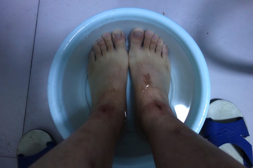 像這樣,用電熱爐燒熱水泡泡腳,暖活一下身心。哎呀~我可憐的腳踝,我太晚保護你們了,但還好在上青藏高原之前就發現異狀。