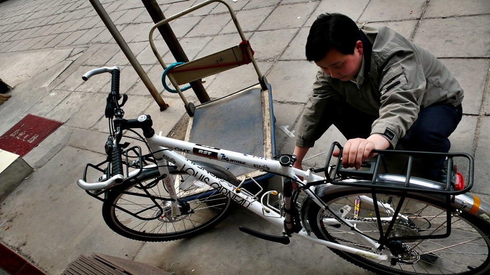 Now at Beijing airport, I pushed the luggage cart round and around and I just can’t find my bike.