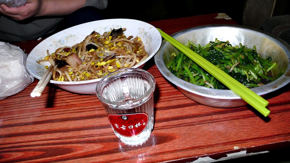 Mongolian wine (Alcohol 38%, 1.5RMB a glass) with Mario’s dishes and the white buns.