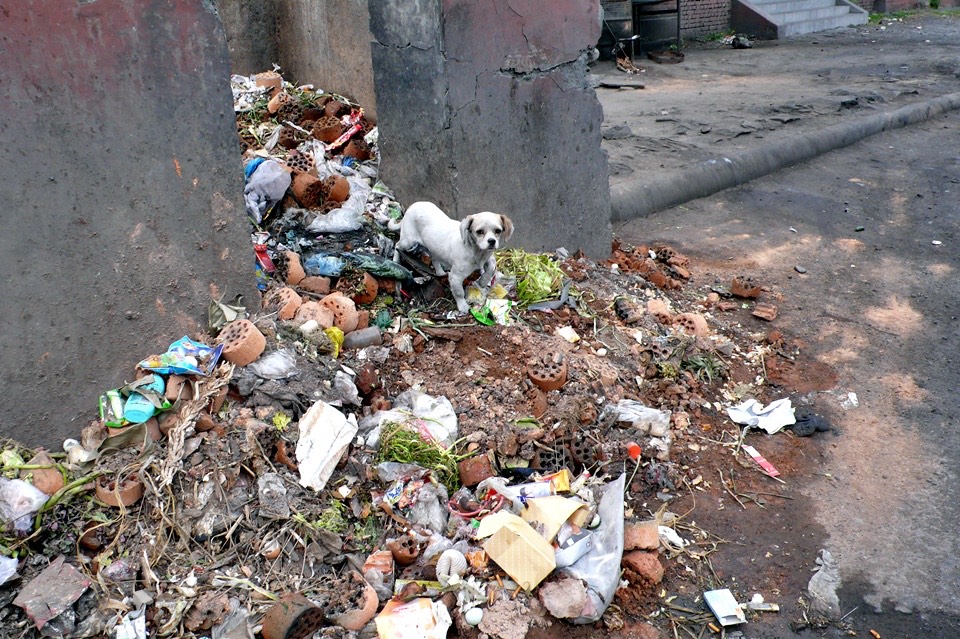 I finally decided that I was going on the wrong way when I saw a little dog sniffing the garbage beside a gentleman.