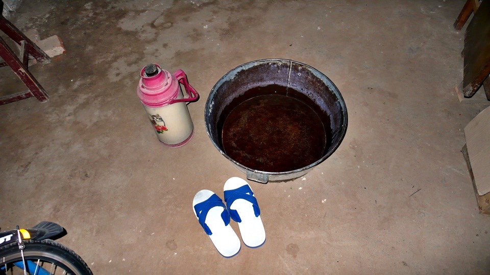 He gave me a bucket of water and then gave a bottle of hot water.