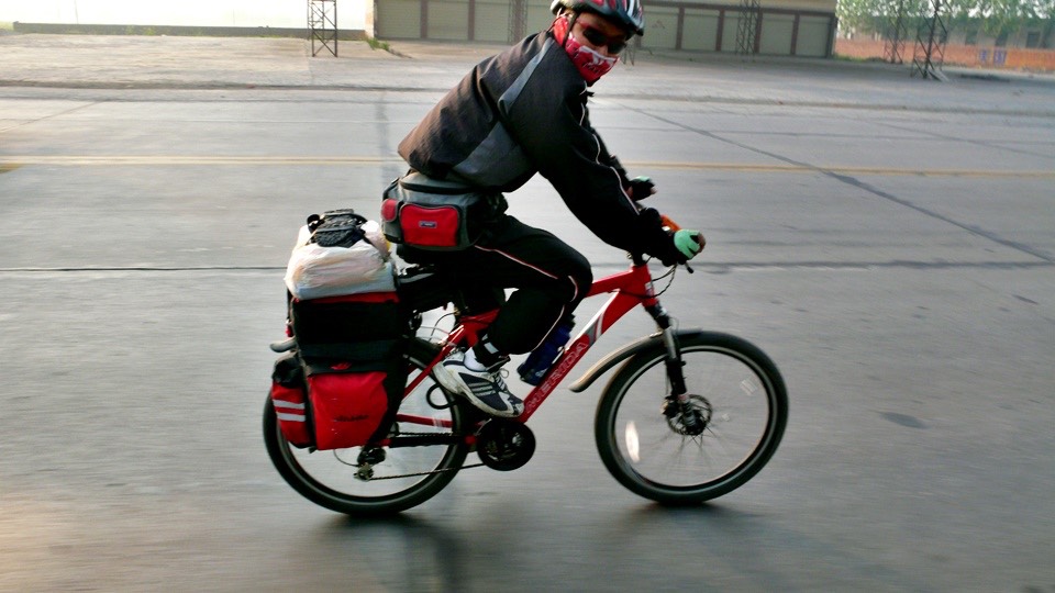 Merida is also sponsoring him and he will get some prices from the company if he finishes this trip.