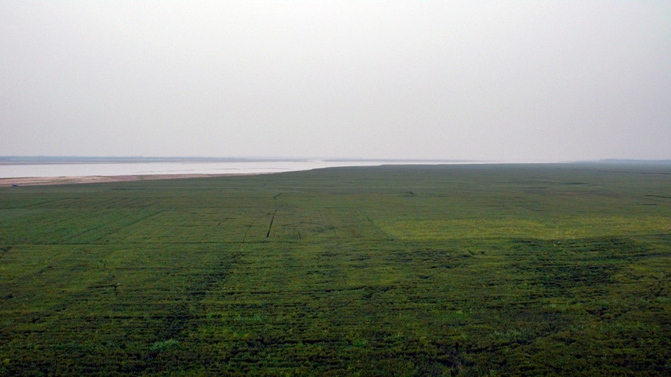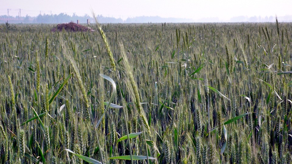 From far way, you can’t tell the difference between wheat and aquatic rice plantation.