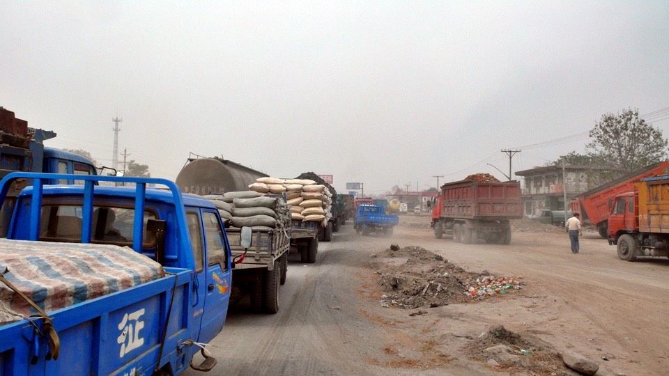 That made things even worst. There was no space for me to ride. So I had to get off and walked in the dusty air.