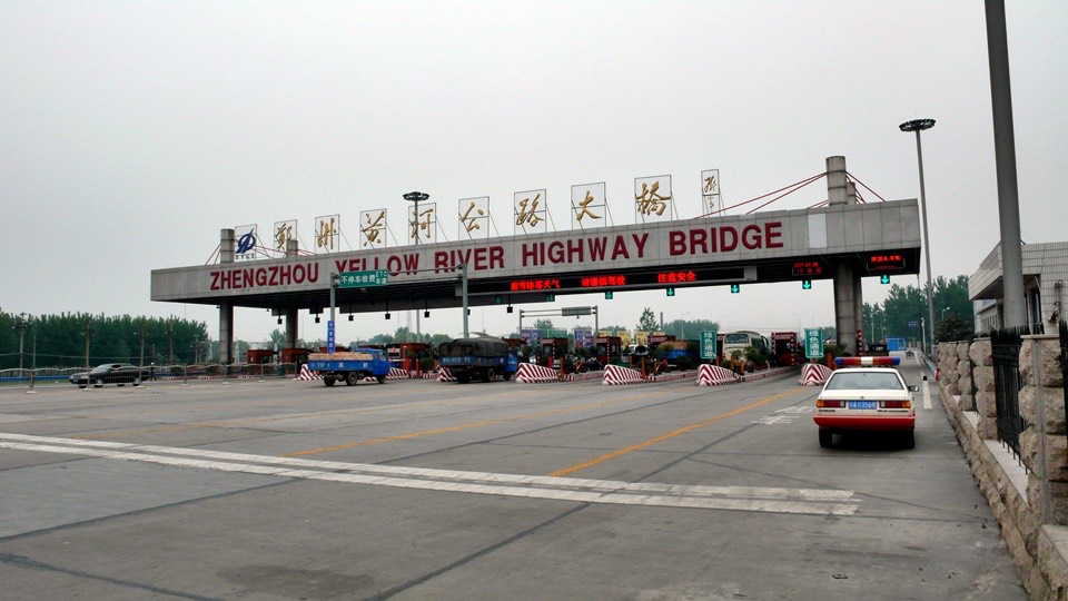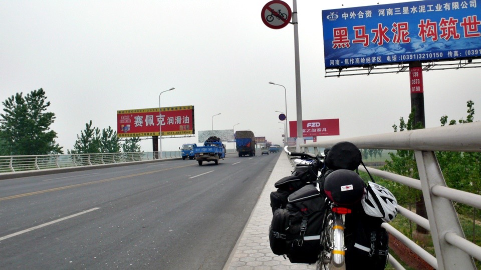 Before got on the Yellow River Bridge, there were signs indicated pedestrian and bikes are prohibited. I asked the guard on the bridge.