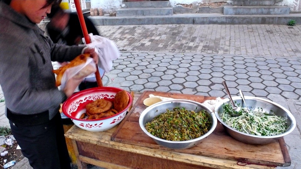 Along the way, I bought five pan-fry biscuits with the size of half of my face stuffed with pickled napa or julienned daikon,