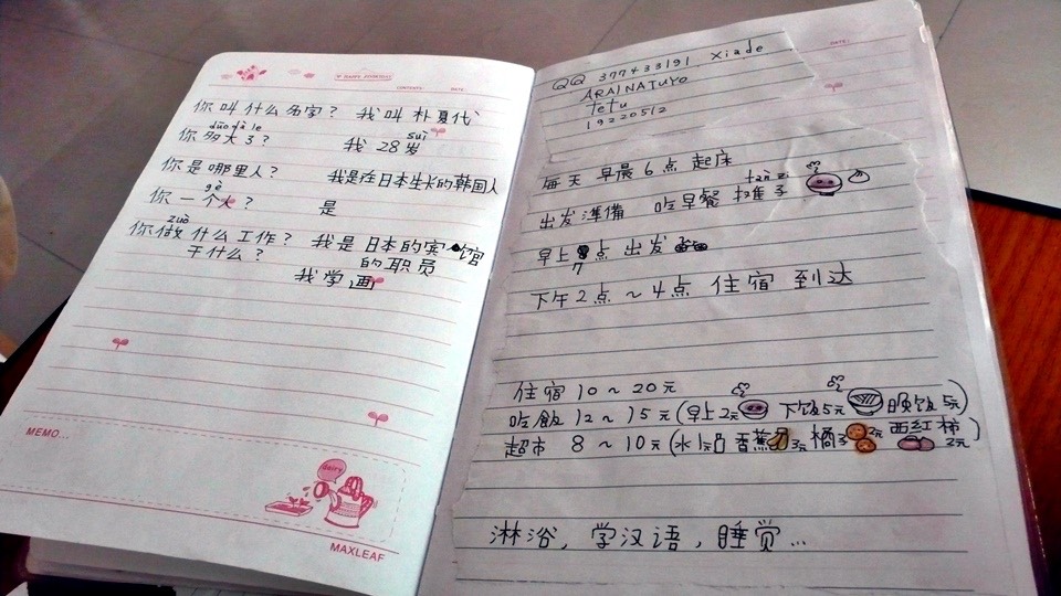 This was from Natu’s notebook, she is learning Mandarin and Chinese food as she travels:
