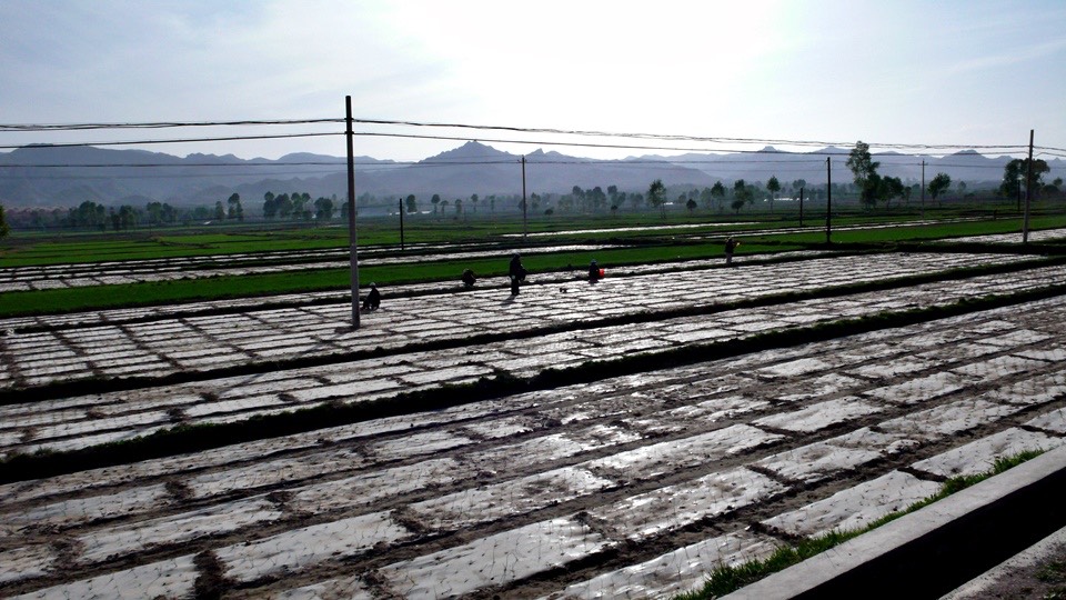 The farmers here had to put these plastic cover on the ground to keep the water from evaporating, or their crops will dry out and die.