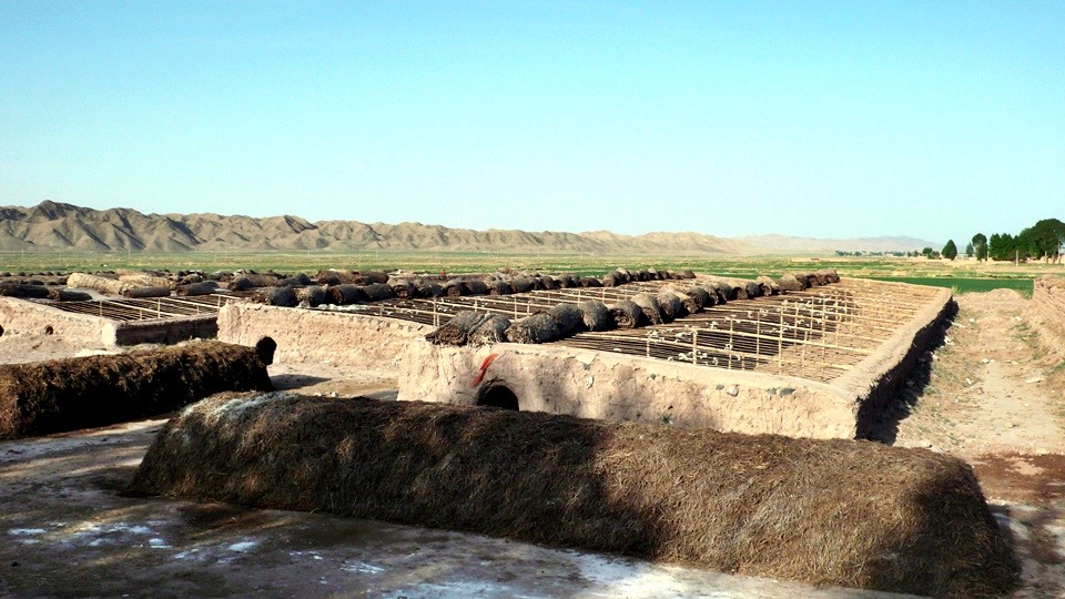 covered with straw mats with two doors on each side. Some mats were unfolded to let the sunlight in.