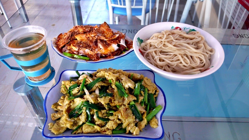 I had scallion scrambled egg, pork in garlic sauce, and noodles for dinner.