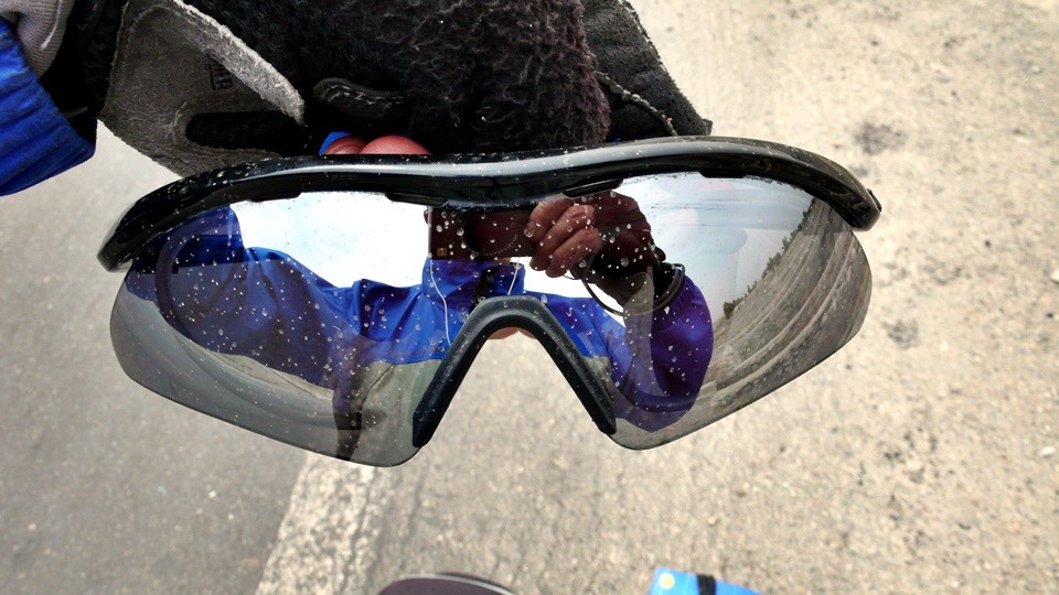 Since the sky is dusty, the dried rain drops left mud spots on my sun glasses.