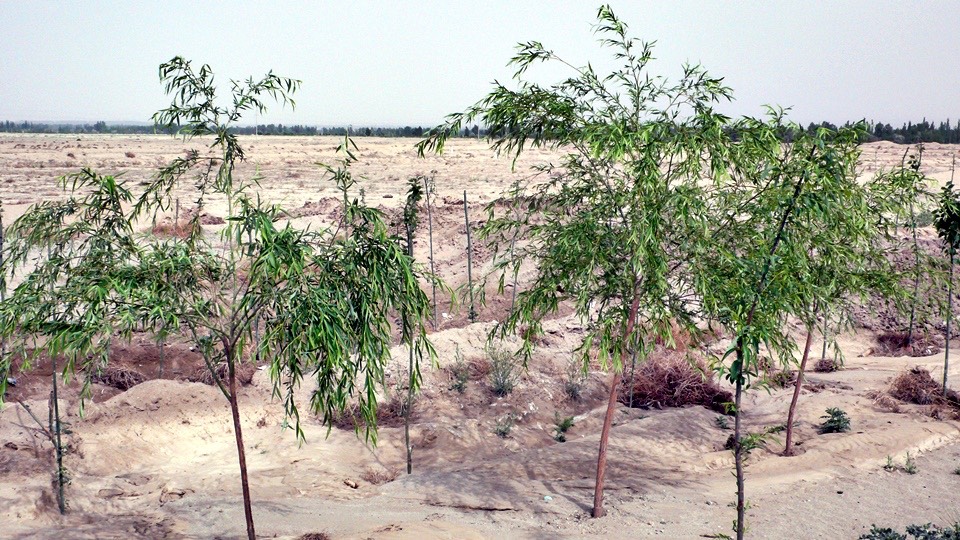 To prevent the desert covering the roads, the municipality grew trees along side the road.