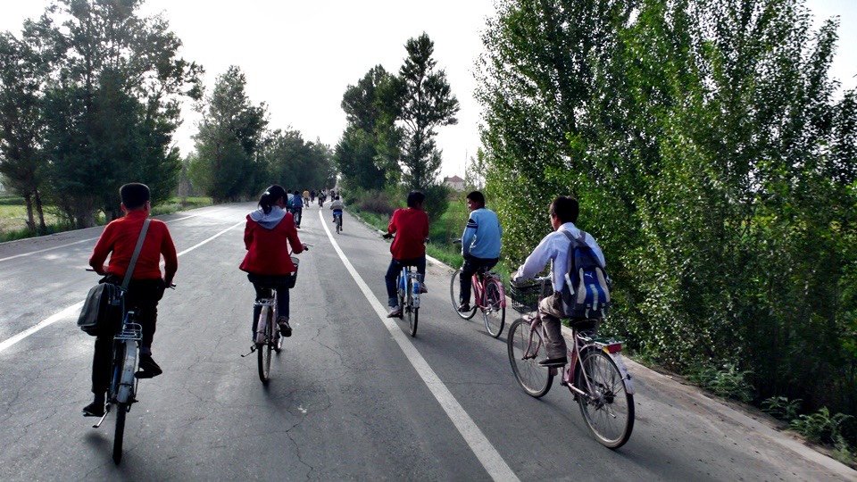 Riding amongst students riding home after school, I guess no one notices I am not local. XD