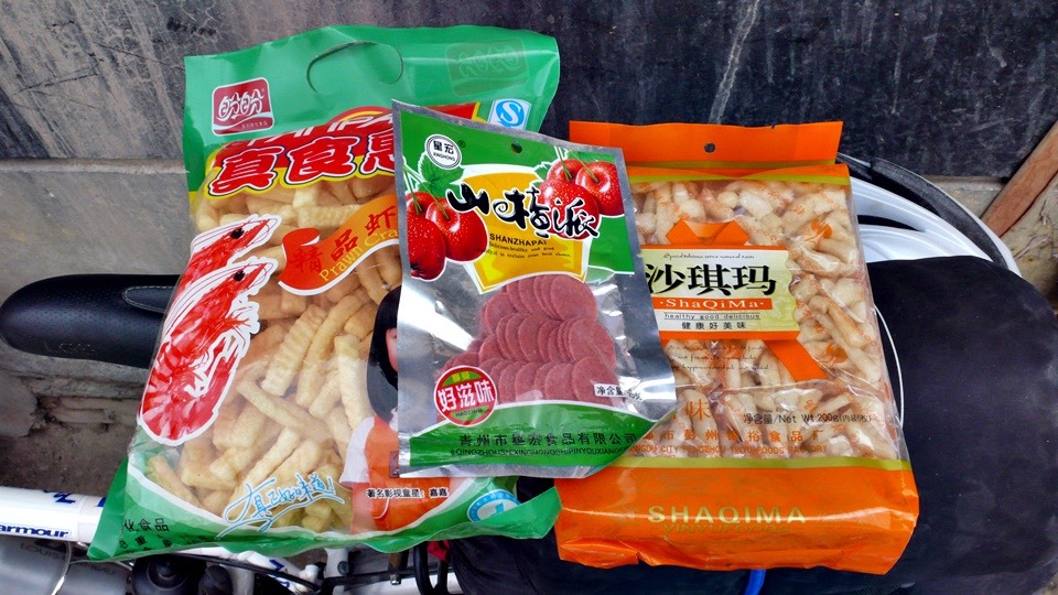 Six of Sha-Qi-Ma (a Manchurian snake), one Shan-Zha-Pai (cookies make from fruits of Haw tree) and cost me 6.5 Chinese dollars.