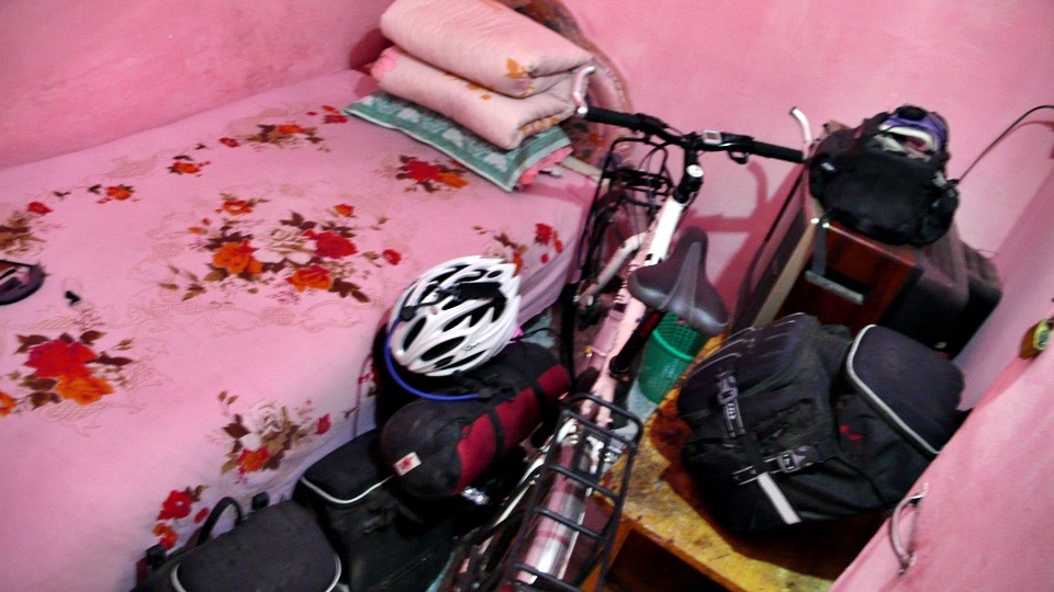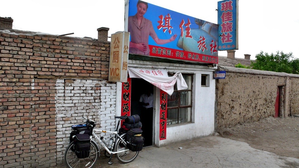 I think this will be the right place for me tonight. The owner asks me to park my bike out side.