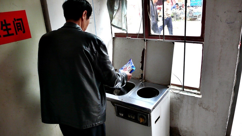 He told me that his son study in Xi-An when I was pouring water into the washing machine.
