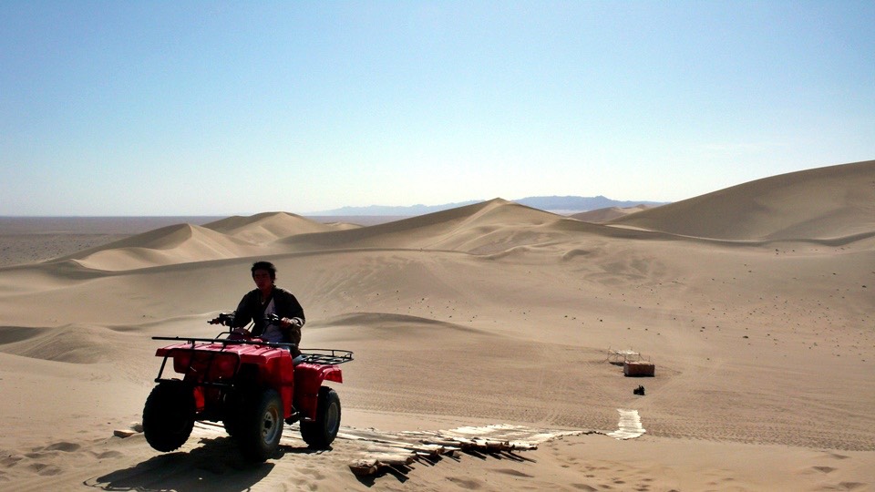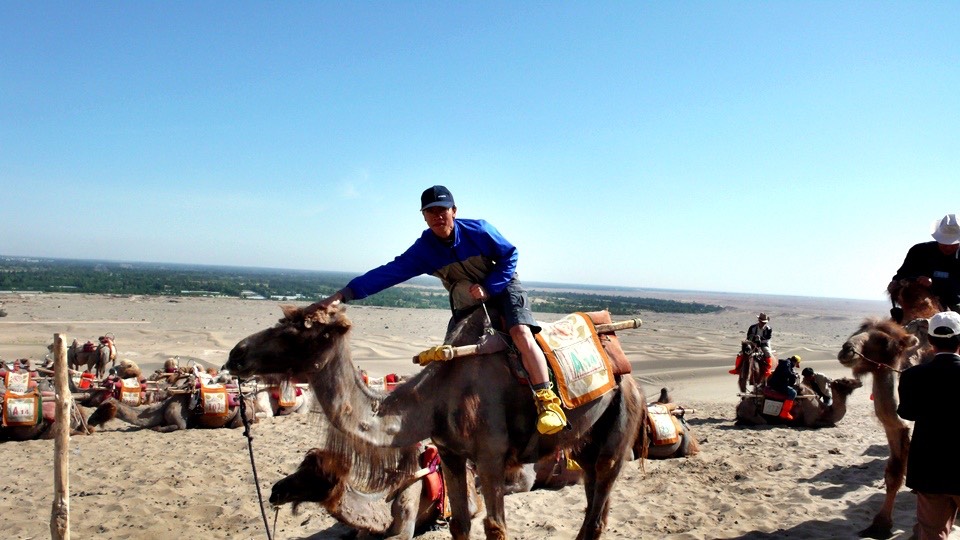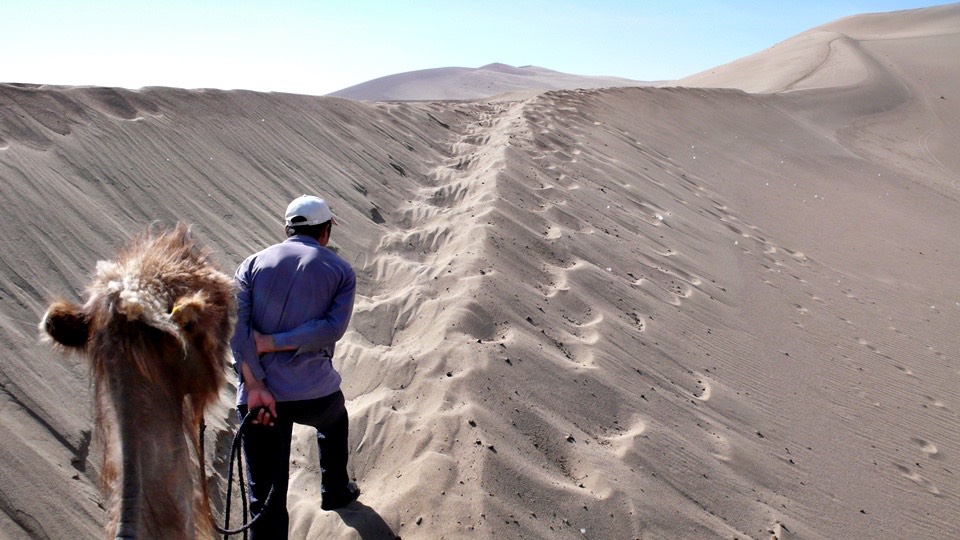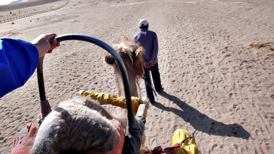 This is a crappy job. In this heat Sutai has to walk the camel over the sand hills and I am his only customer.