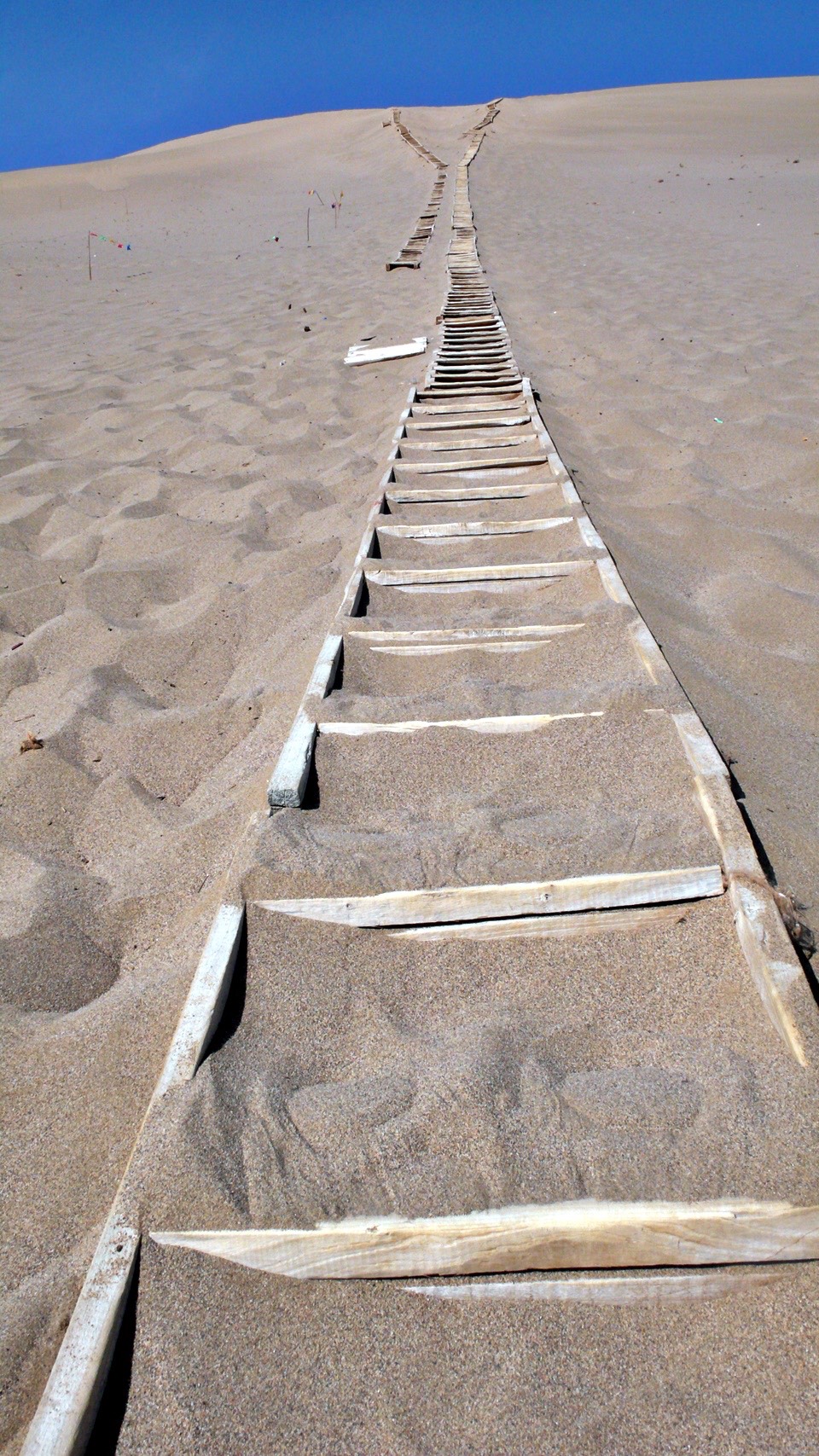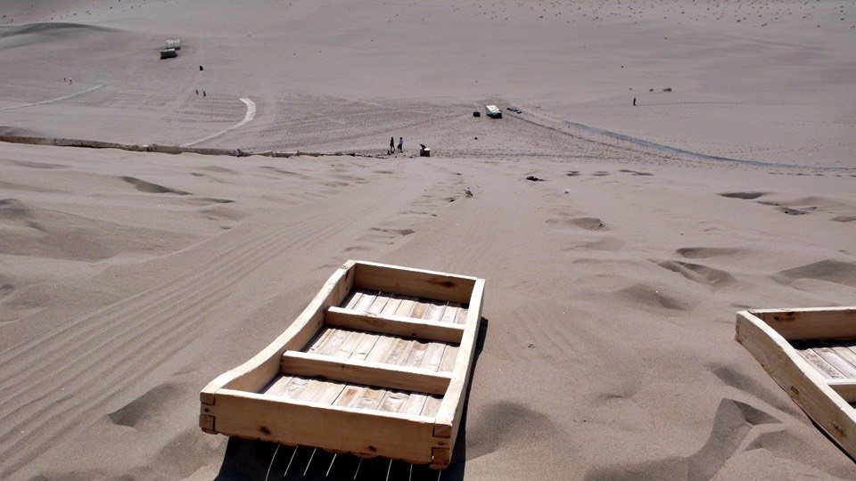 When you eventually reach the top you will stacks of bamboo made box like “sand surfing boards”.