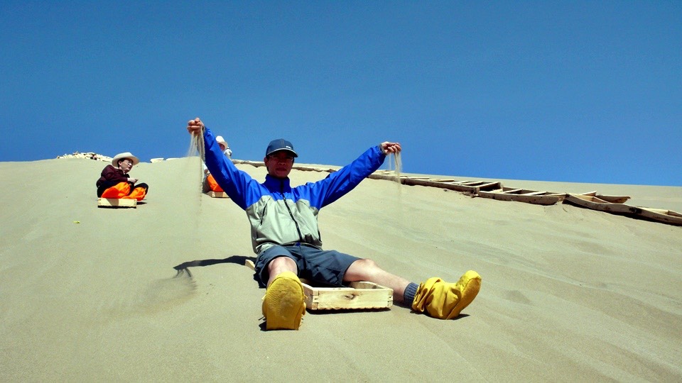 They charge you another 10 RMB for sand surfing. Since I already paid before the climb, I just need to show them my ticket.