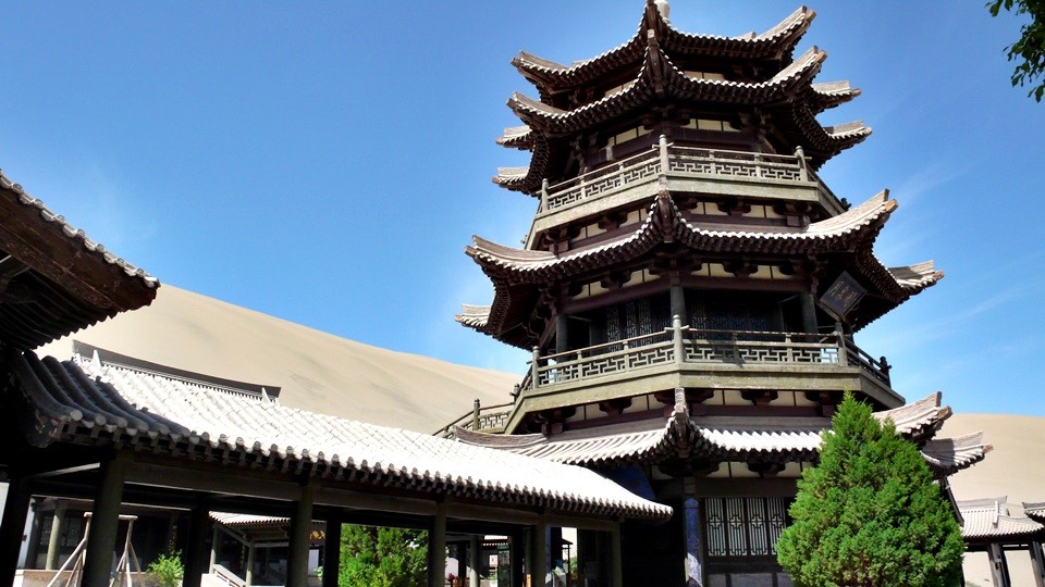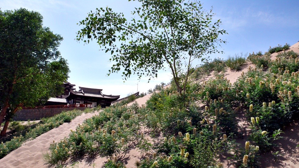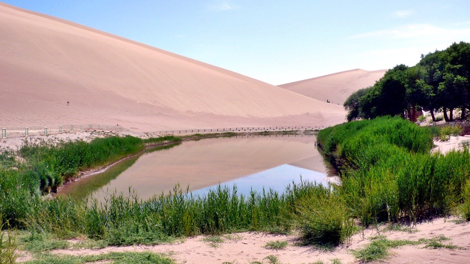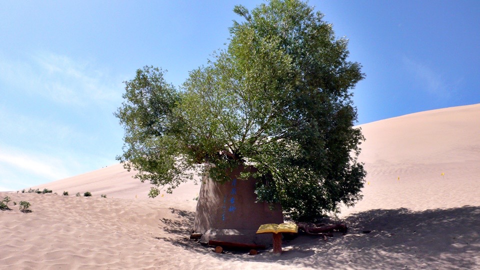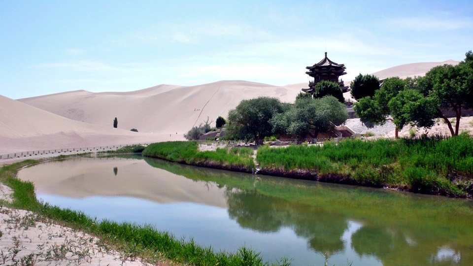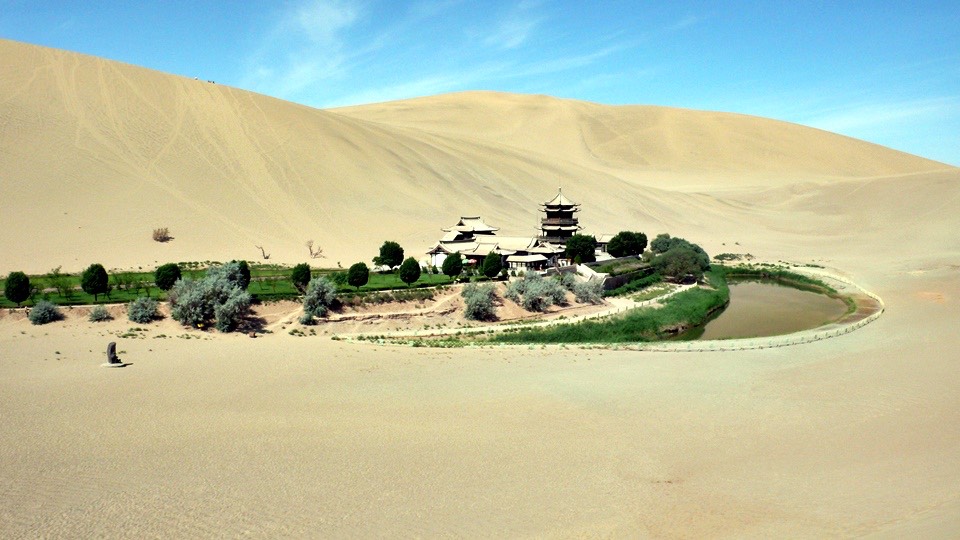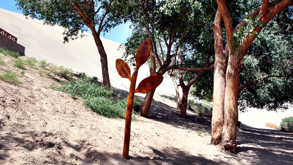 From the sand paddling Mt. Mingsa back to the gate and then turn toward the Crescent Spring.