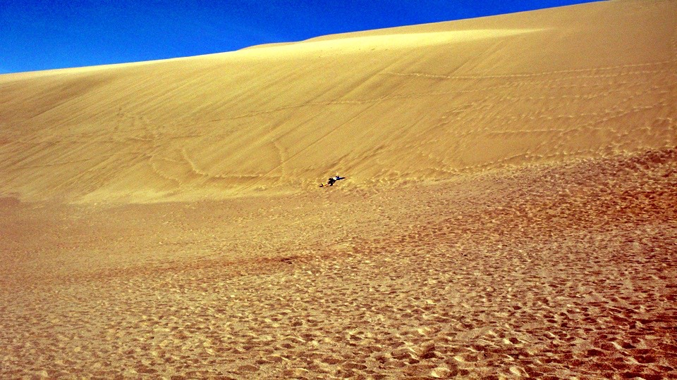 You can sand surf here. However, you had to climb up a steep hill first on your own two feet and it isn’t easy.