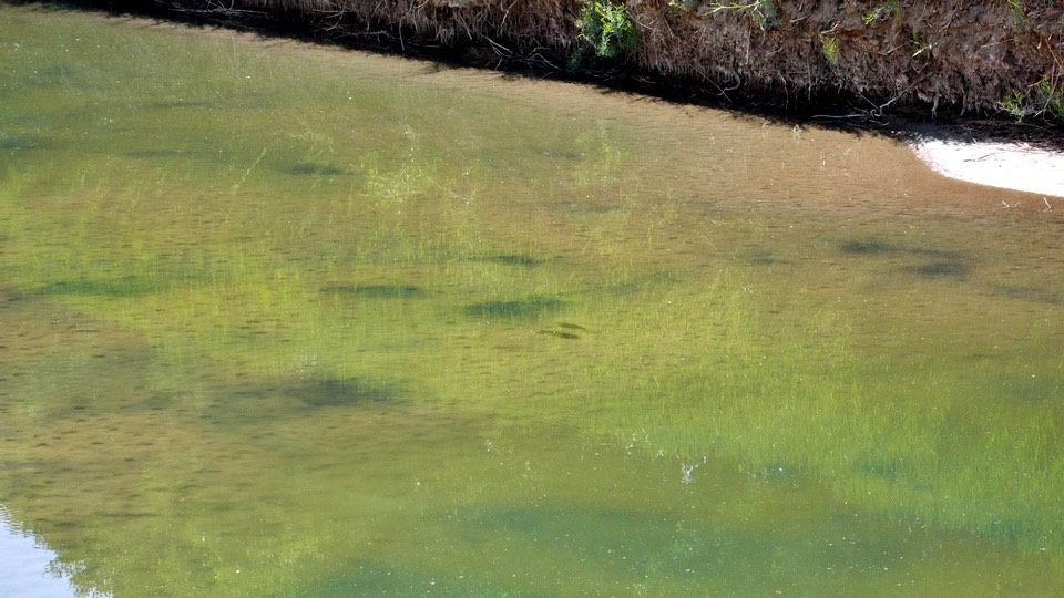 The sand here by the spring is larger, crystal like and reflects the sunlight.
