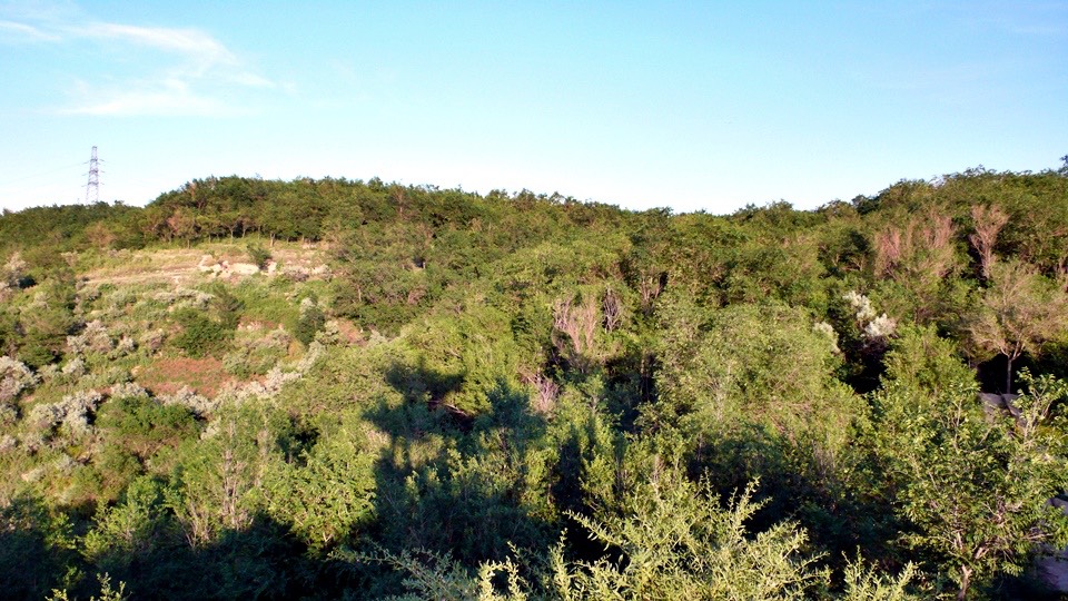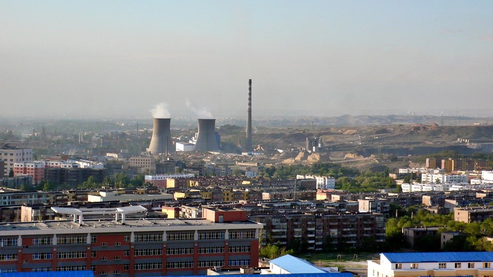 Following a small path, I saw the boarder of Urumqi city, some mountains, and some huge buildings look like power plants.