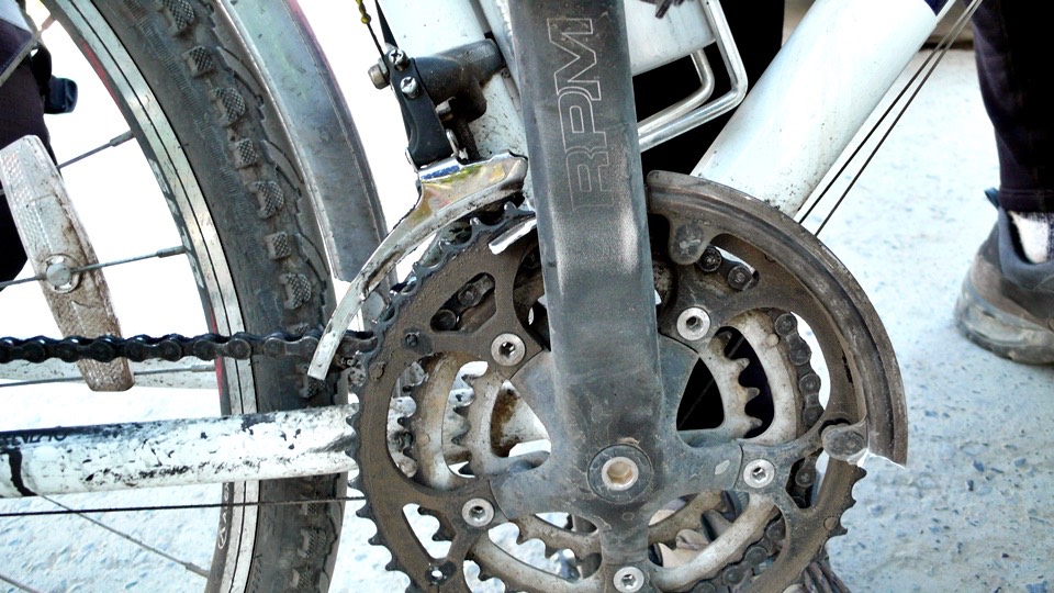 Just when I started paddling, my right foot stupidly kicked the protection plate on the bike.