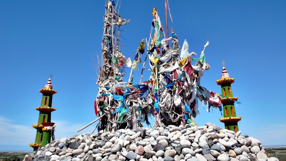 On the top of the “rock hill” were several tree branches with many ribbons. And this is called Yurt.