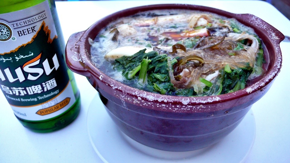 I had a chicken casserole and a bottle of local Wusu beer for dinner.