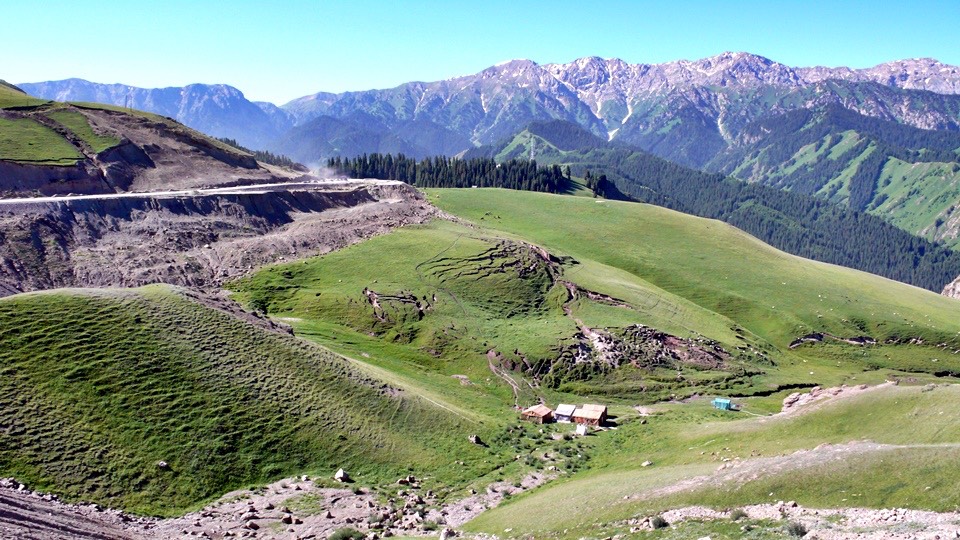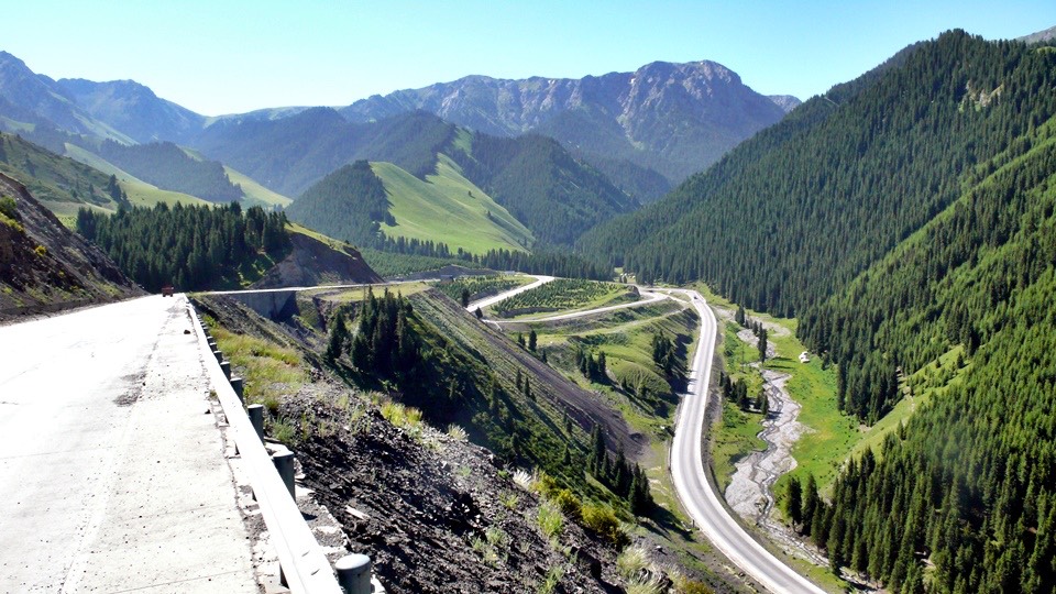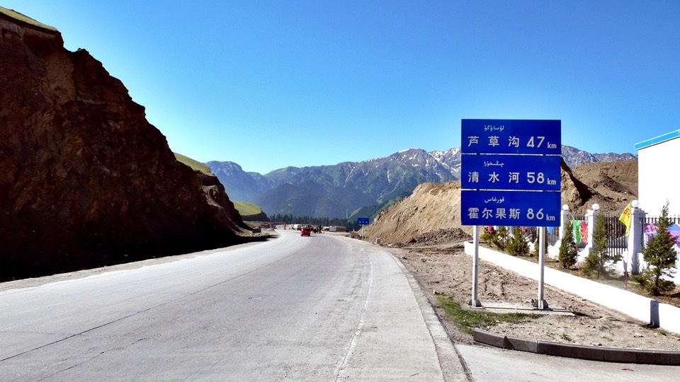 This 90 km from Sayram Lake to Korgas city, my last stop in China, is mostly downhill.
