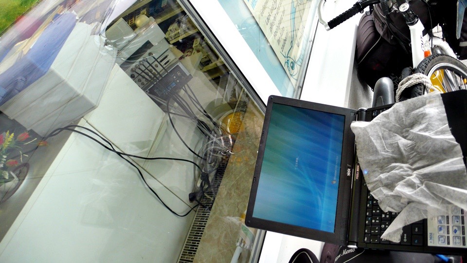 Sitting in front of the store to write the travel blog, it is getting toward noon,
