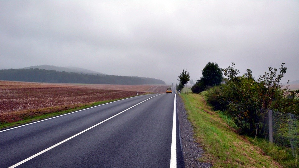 After crossing through this town I found the correct road, and the sky is clearing up as well.