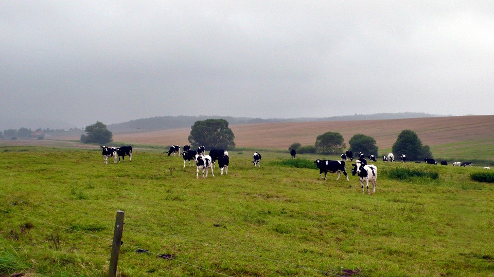 Looking at the cow eating grass, I thought I should have bought some milk to drink for health reasons.