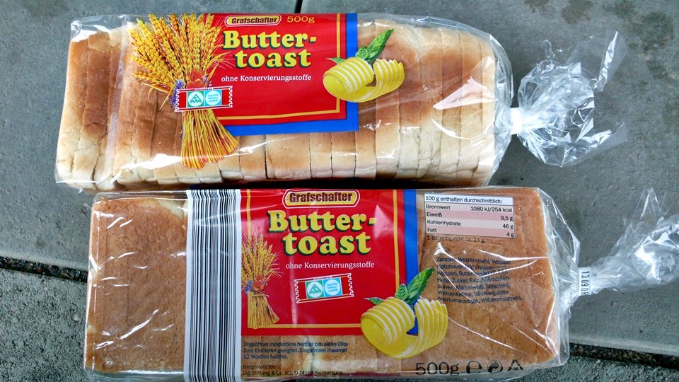 I opened up the plastic bag on the bike handle, took out an unopened bag of toast, I said I would eat this today,