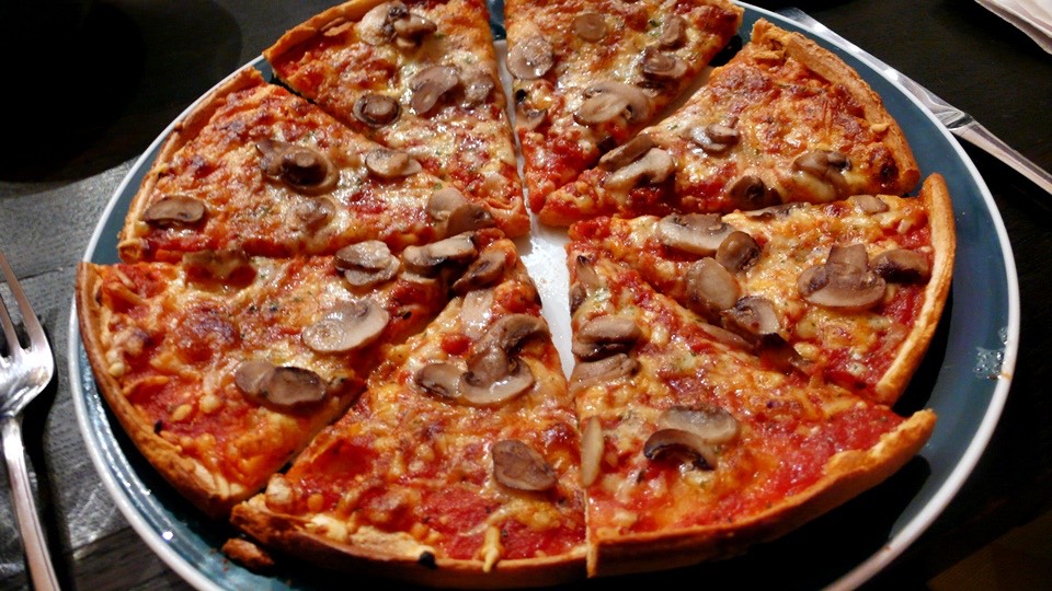 After the pizza is done baking, it wasn’t placed on the kitchen table, but to the dining room table.