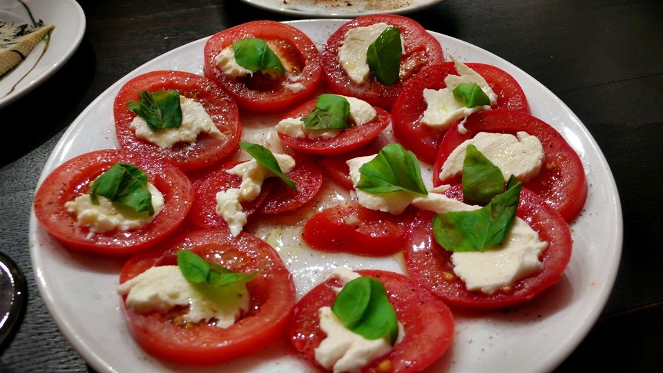 The whole pizza for me, and mozzarella cheese with tomato drizzled in extra virgin olive oil and basil;