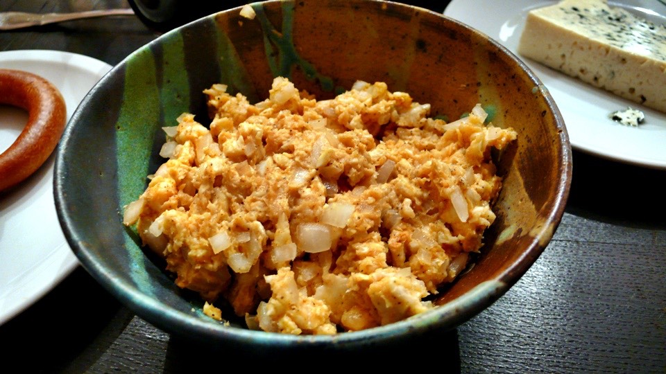 And another type of cheese, with the addition of spices and minced onion, very delicious.