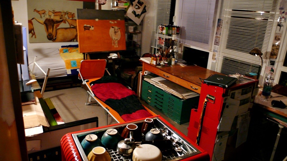 The first room is a painting room, and there are even heater provided for warmth.