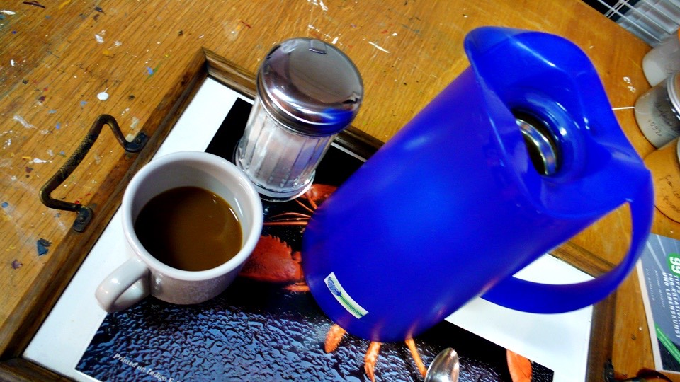 Before I going to bed, Peter made a big pot of coffee; he is putting inside a thermo so I can take it with me for tomorrow.