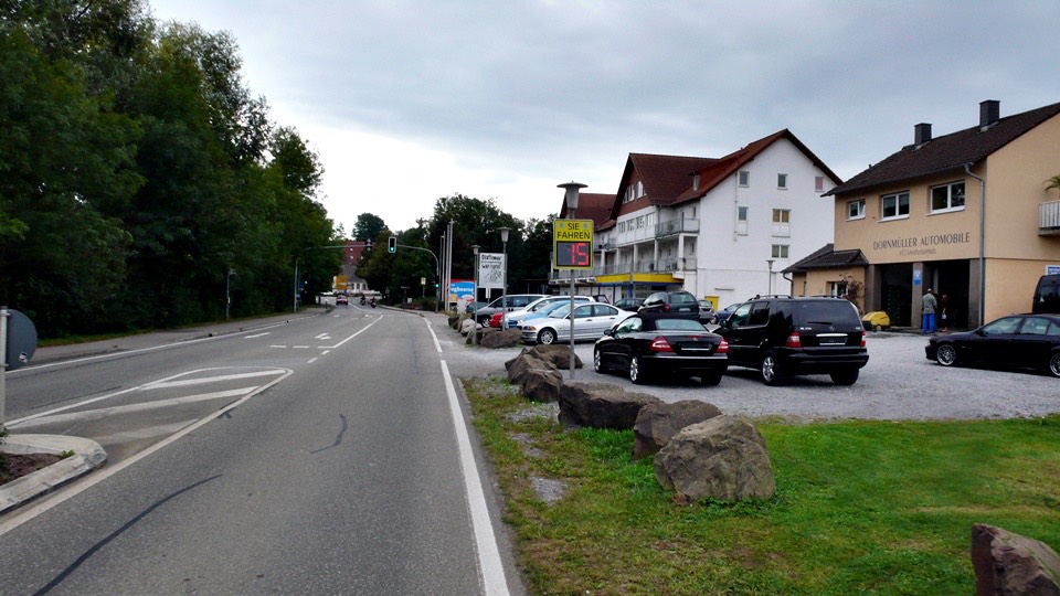 I will see some yellow machine in the entrance of the city, on it says “SIE FAHREN”,