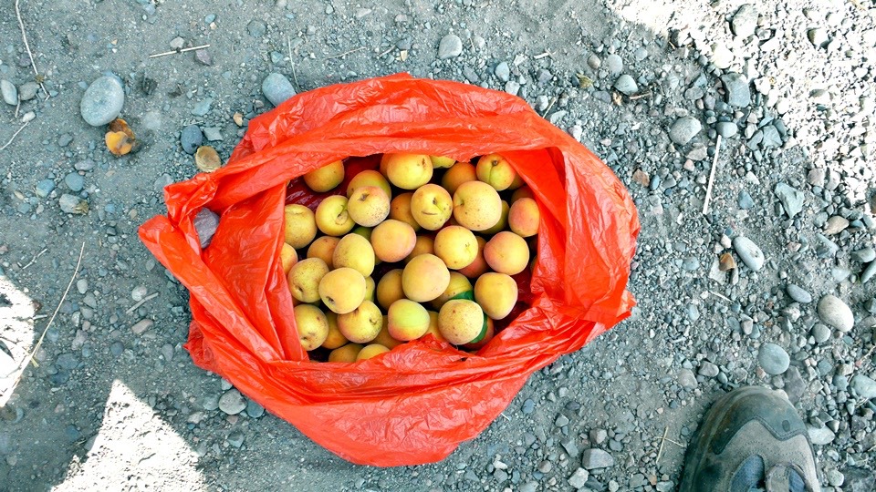 Well, let me help. I found a plastic bag from my pack, and handed to her. She thought about it and gave me lots of prunes.