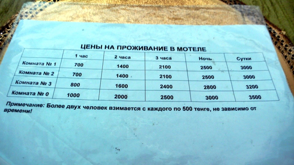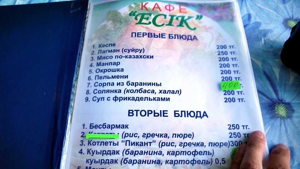 Anyway, of course I pointed to the cheapest one, and put out one finger (index finger) to say I was alone, 700 tenges.