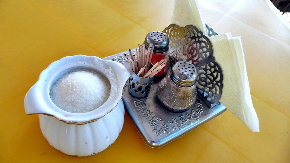 The table setting was western style and always with a very large sugar jar.