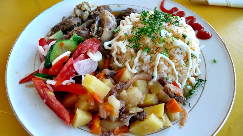 I got a set meal including stew potato, chicken, salad and rice stopped with white sauce – a good portion, and palatable.